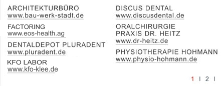 www.bau-werk-stadt.de www.eos-health.ag www.pluradent.de www.kfo-klee.de www.discusdental.de www.dr-heitz.de www.physio-hohmann.de PARTNER SEITE1 PARTNER SEITE2